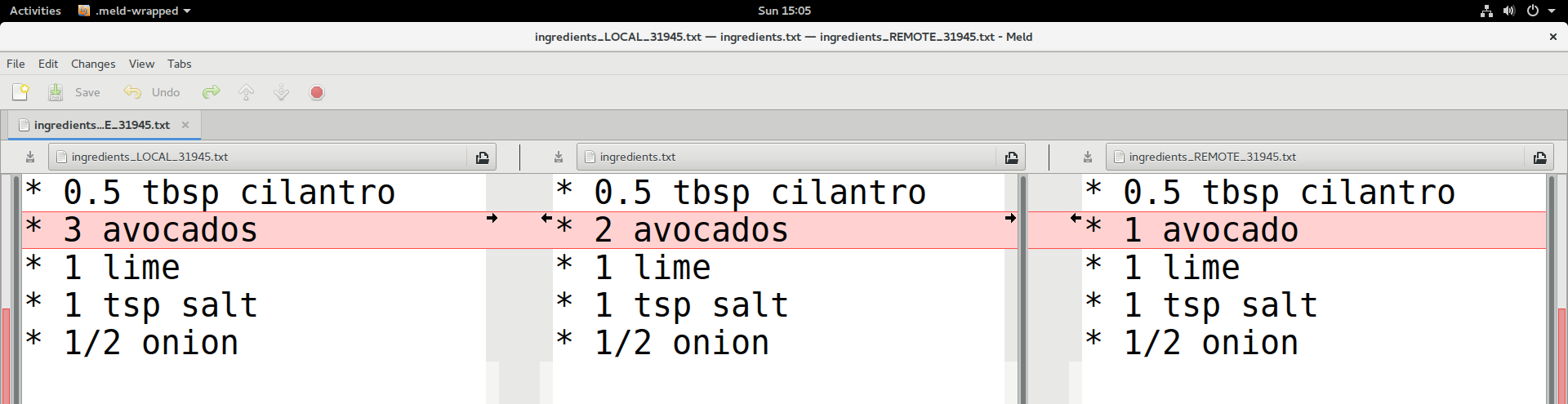 - Again create a conflict (for instance disagree on the number of avocados).